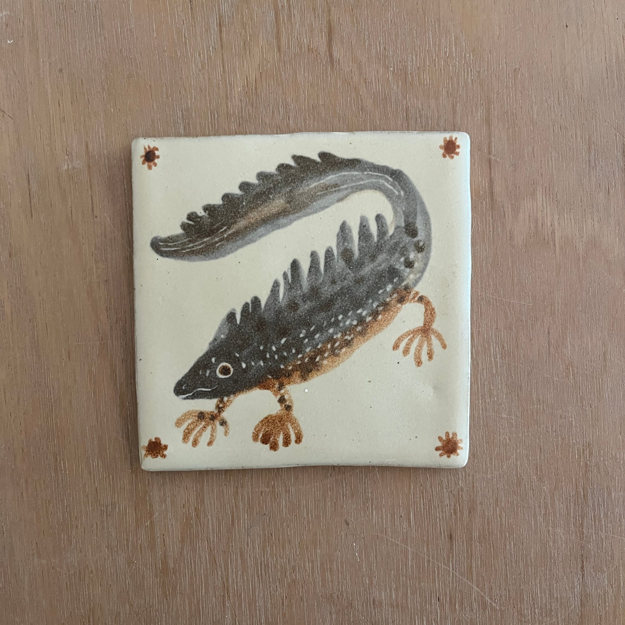 Stoneware handmade tile. 100mm x 100mm x 7mm approximately.