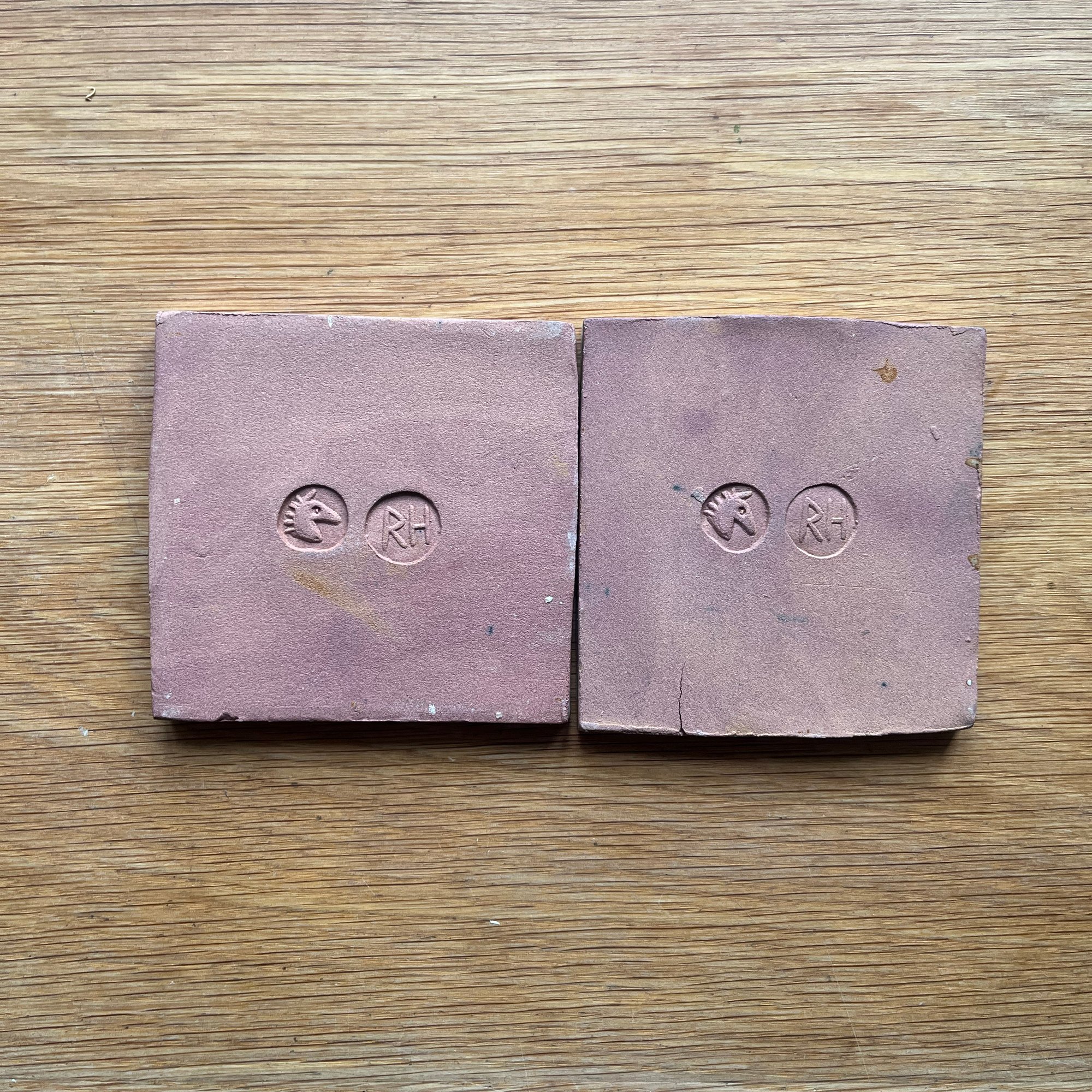 Stoneware tiles. 100mm x 100mm x 7mm approximately.