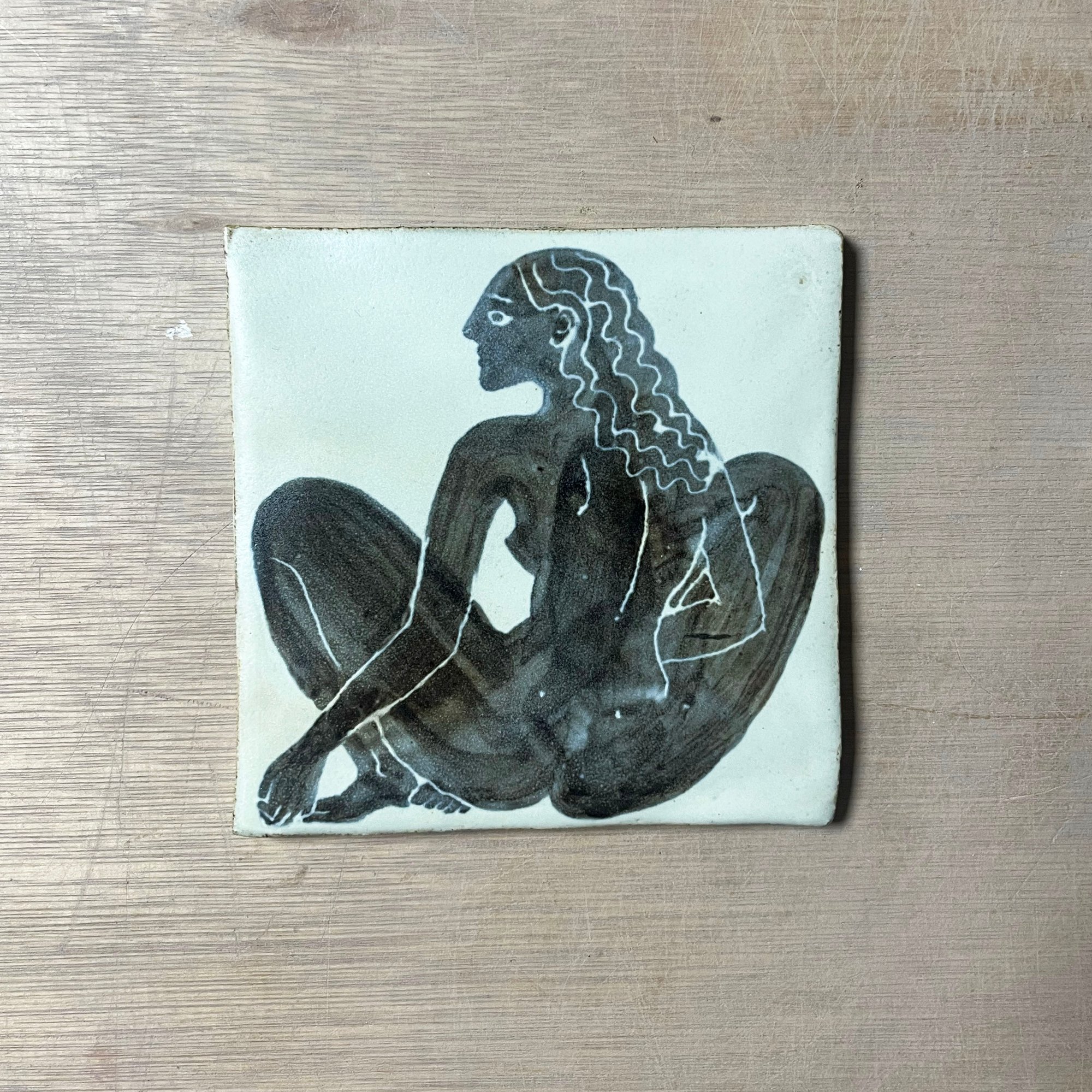 Stoneware handmade tile. 100mm x 100mm x 7mm approximately.